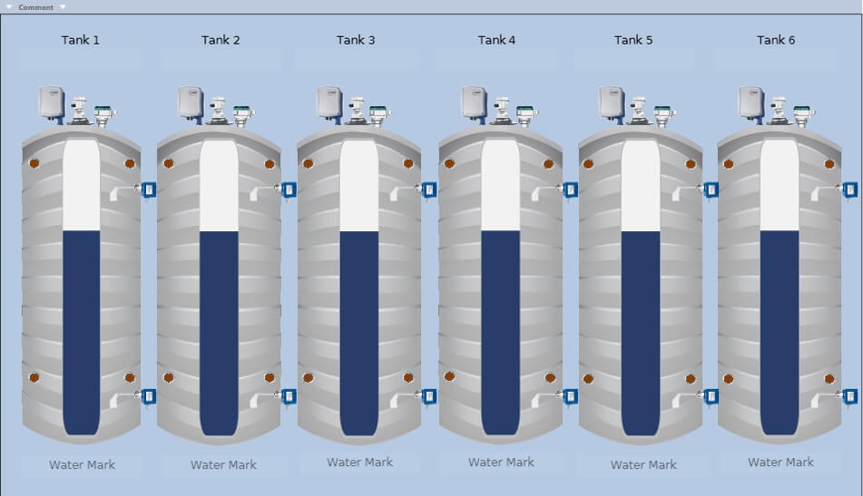 Med Unitronics 15.6 inch HMI panel (USP-156-B10 UniStream ™). Visas grafiskt tank innehåll i 6-12 tankar samt nivåvakter och deras status. Välj olika sorters nivåmätnings typer: Beröringsfri Radar, Radar på lina, Ultraljud, Kapacitiv, eller lodning. Enheten har inbyggd Web server för extern visning via web läsare. Dessutom kan displayen speglas till smartphone.