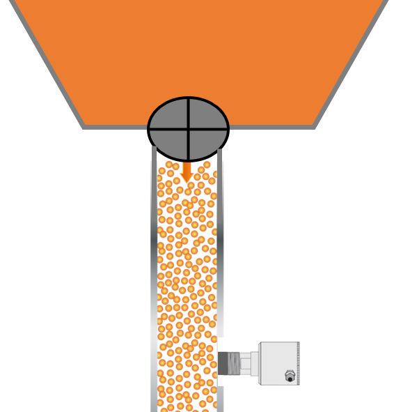 fasta ämnen transporteras (pneumatiskt), blockeringar, en tom behållare eller en produktbrygga längst ner på en behållare för behållare omedelbart och säkert erkännas.