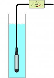 Nivåmätning av icke-aggressiva vätskor i behållare utan tryck, borrhål och vattenbrunnar, som ger en analog utgång (4 … 20 mA).