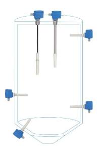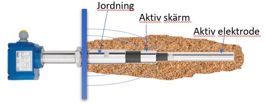 Kapacitiv nivågivare. Överfyllnadsvakt, vakt och bottennivåvakt.
