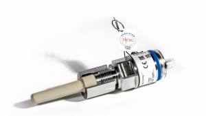Som DLS 35_-22 men högre tryckhållfasthet, fullt (PFA) isolerad stavelektrod med förbättrad motståndskraft motgenomträngning av ångor och gaser. För detektering av vatten och andra elektriskt ledande vätskor i livsmedel, läkemedel och kemisk industri. Lämplig för applikationer med hög temperatur (het ånga), flyktiga aggressiva vätskor etc. Horisontell eller vertikal montering.