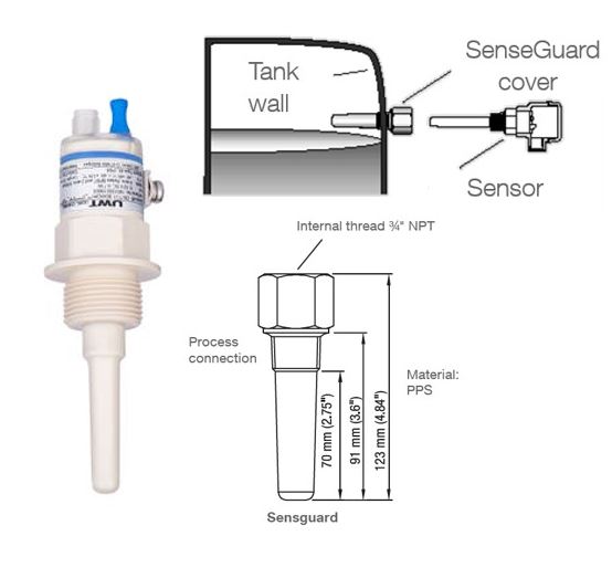 Kapacitiv givare teflon beklädd Överfyllnadsvakt, vakt och bottennivåvakt. För aggressiva medier.