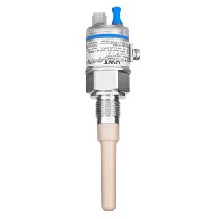 Fullt (PFA) isolerad stavelektrod med förbättrad motståndskraft mot genomträngning av ångor och gaser. För detektering av vatten och andra elektriskt ledande vätskor i livsmedel, läkemedel och kemisk industri. Lämplig för applikationer med hög temperatur (het ånga), flyktiga aggressiva vätskor etc. Horisontell eller vertikal montering.