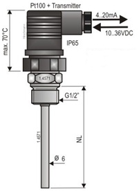 Finns i olika temperaturområden från -40… +400°C.Utgångar: Pt100 eller 4 – 20 mA.