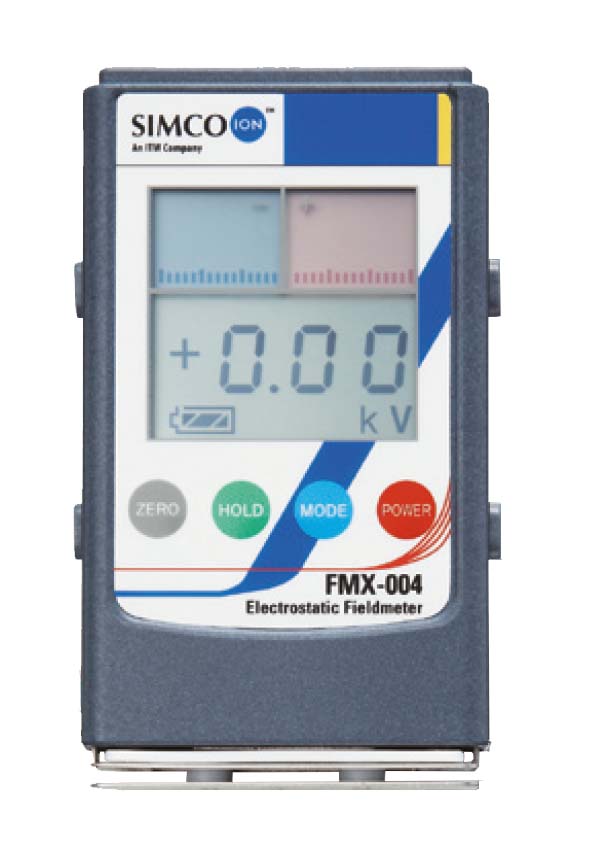 Meech 983v2 fältmätare som mäter statiska laddningar direkt på produkten. Produkten är handburen och mäter på så stort mätområde som + – 200 kV med 5% noggrannhet. Mätaren har display och mycket enkel att läsa av direkt vid mätningen.